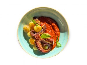 Картопляно-сирне пюре · брокколі · бебі кукурудза · бебі морква · перець болгарський · каперси · соус Песто