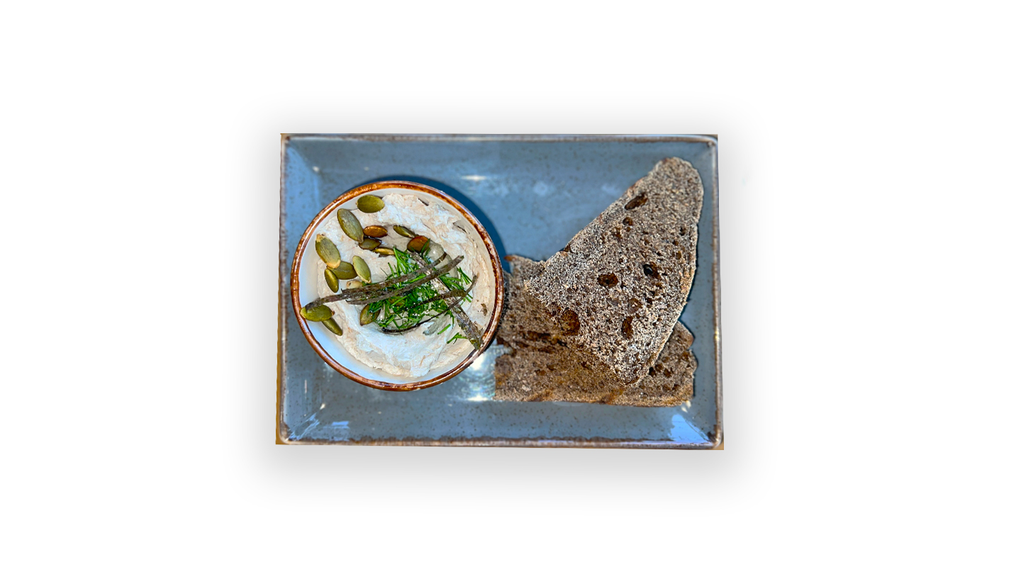 Солодовий хлібчик · скумбрія · філадельфія · вершки · сироп Юдзу · норі · гарбузове насіння · кріп