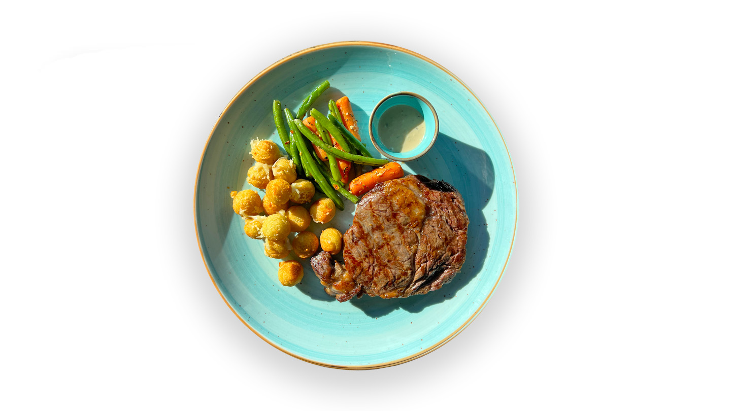 Спаржева квасоля · бебі морква · картопляні крокети · вершкове масло · сир Пармезан · соус green papper